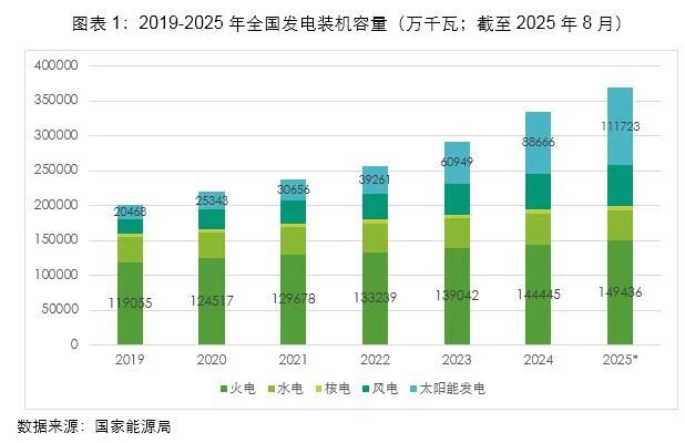 “十四五”火電裝機(jī)規(guī)模穩(wěn)步提升。2019年全國(guó)發(fā)電裝機(jī)容量20.1億千瓦,到20258月已超過(guò)36億千瓦,其中增量最大的是太陽(yáng)能發(fā)電接近10億千瓦。而火電裝機(jī)也保持了穩(wěn)步提升,從2019年的11.9億千瓦,增加到20258月的14.9億千瓦。