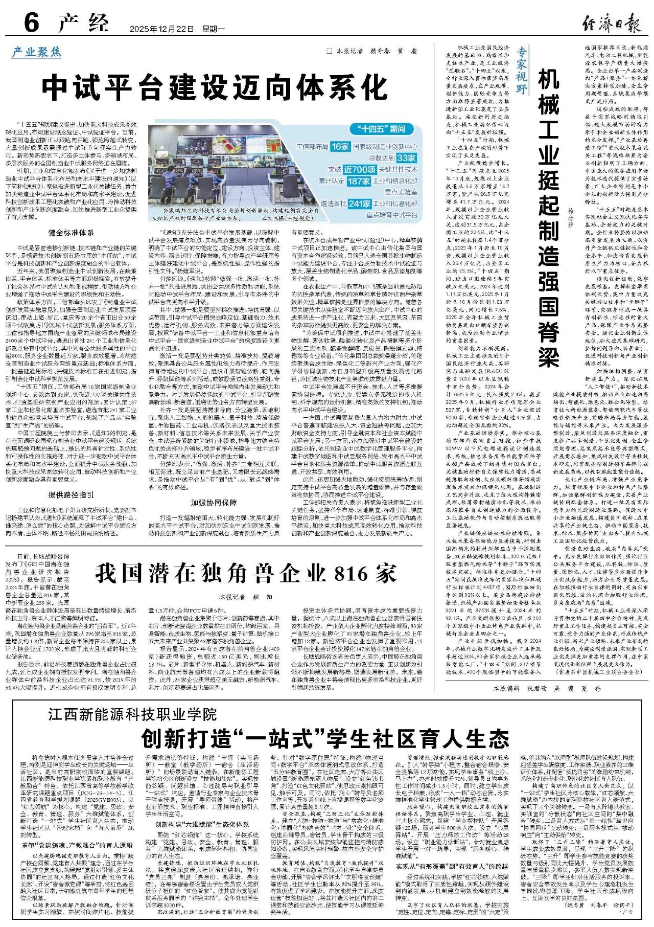 優化產業鏈布局,增強產業競爭力。培育優質中小企業和特色產業集群,加強集群創新能力建設,完善產業鏈協同配套體系。打造一批具有國際競爭力的先進制造業集群。促進大中小企業融通發展,構建協同創新、成果共享的產業鏈生態。推動中國裝備、技術、標準、服務協同“走出去”,提升機械工業國際化經營能力。