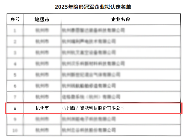 近日,浙江省經濟和信息化廳公布了2025年度浙江省“隱形冠軍”企業(yè)名單。西力科技憑借扎實的技術積累、優(yōu)秀的市場表現與持續(xù)的創(chuàng)新能力,成功入選,正式躋身省級“隱形冠軍”行列。