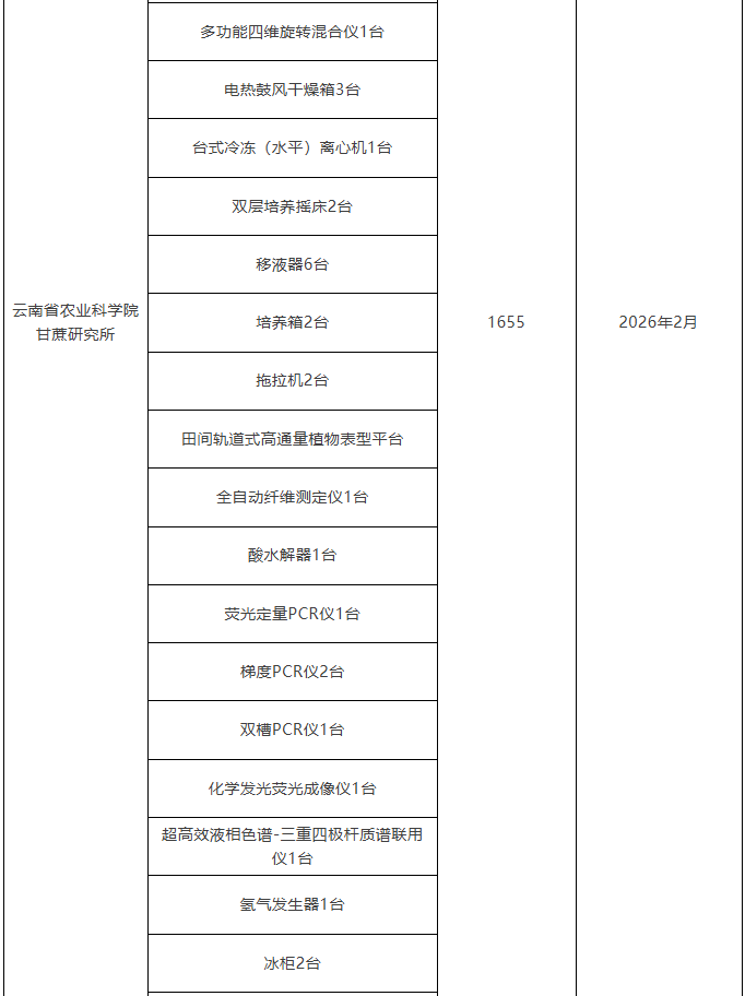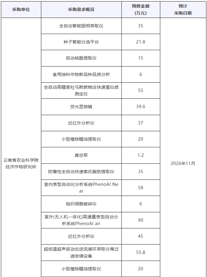 云南省農(nóng)業(yè)科學(xué)院2026年儀器采購(gòu)意向匯總