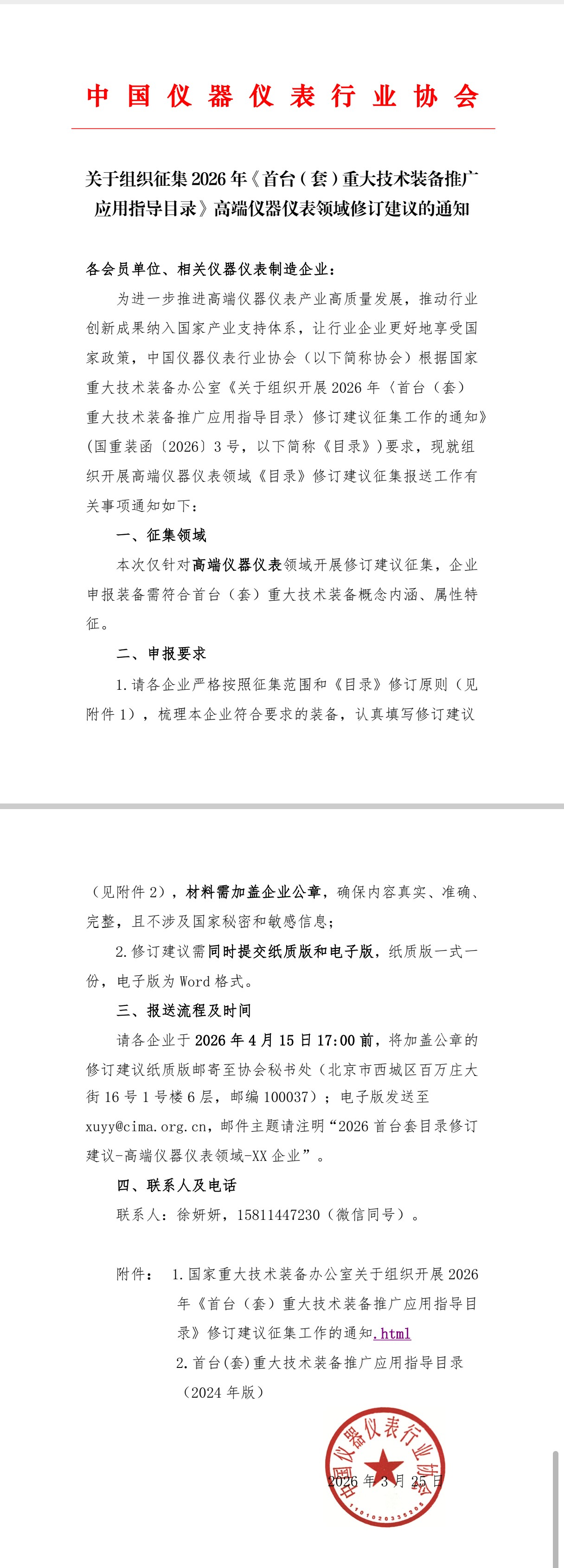 關于組織征集 2026 年《首臺(套)重大技術裝備
